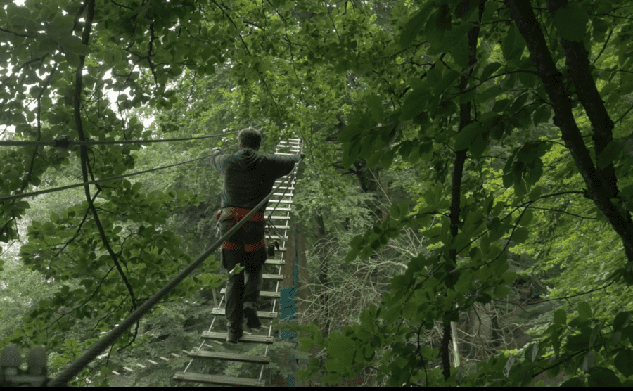 Accède au saut par un parcours aérien intégrant plusieurs passerelles, dont la légendaire passerelle de la mort qui tue : 37 m de long, 18–20 m de haut, volontairement instable — un défi d’équilibre mémorable !