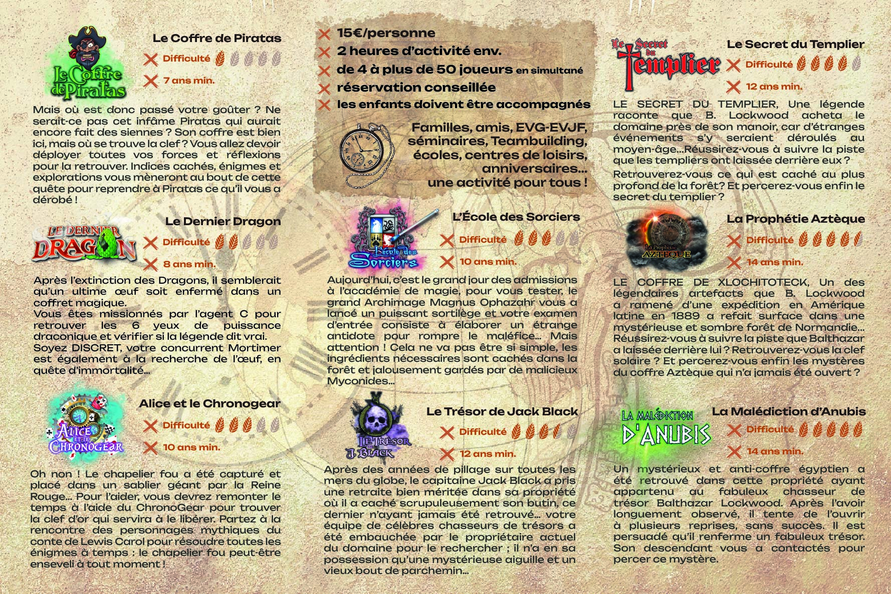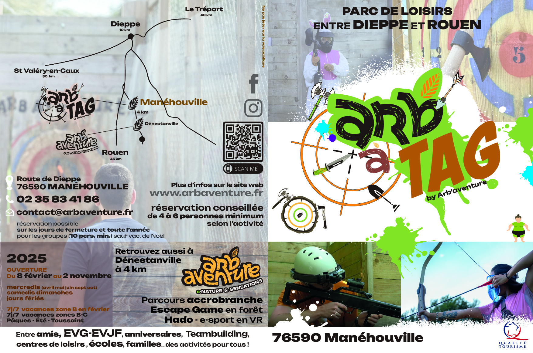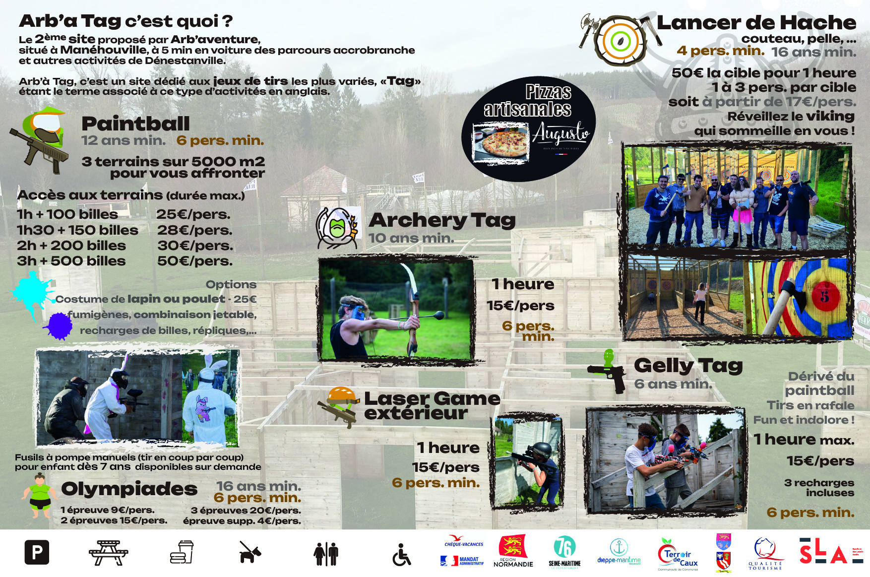 🎯 Flyers des activités : accrobranche, escape game extérieur, paintball, laser game outdoor, Hado, archery tag, Gelly tag, lancer de hache.