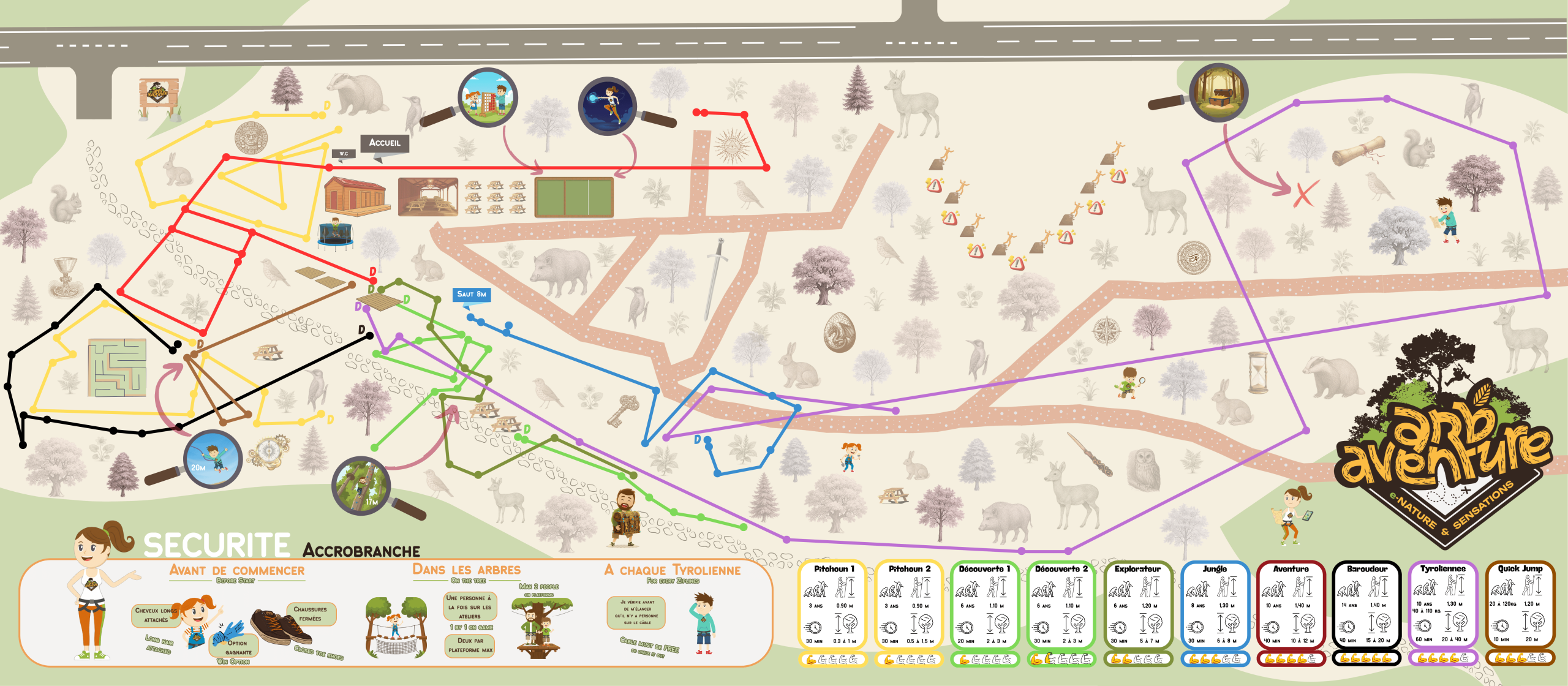 Ces plans vous permetterons ansi d’explorer le parc avant votre arrivée, de choisir vos activités selon l’âge ou le niveau, et de mieux orienter vos groupes sur place.